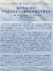 アフガニスタン元留学生「教え子を救え!」プロジェクト・シンポジウム「私たちはいかにアフガニスタン人留学生を教えてきたか」開催のご案内(9月21日配信)